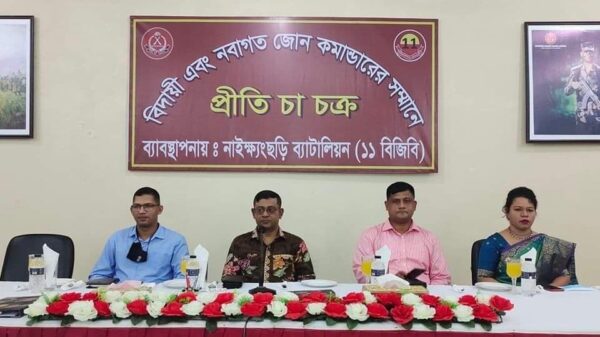 নাইক্ষ্যংছড়ি প্রতিনিধিঃ বান্দরবানের নাইক্ষ্যংছড়ি ১১ বিজিবির জোন কমান্ডার লেঃ কর্ণেল মোঃ নাহিদ হোসাইন এর যোগদান ও বিদায়ী জোন কমান্ডার লেঃ কর্ণেল শাহ আব্দুল আজিজ আহমেদ এর বিদায় উপলক্ষে শনিবার (১৩ আরো খবর