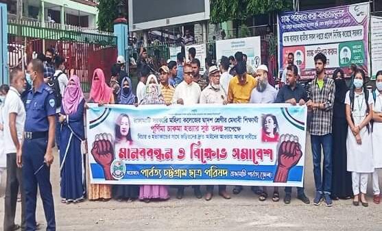 রাঙ্গামাটি প্রতিনিধি রাঙ্গামাটি সরকারি মহিলা কলেজের দ্বাদশ শ্রেণির শিক্ষার্থী পূর্ণিমা চাকমা হত্যার সুষ্ঠ তদন্ত সাপেক্ষে বিচার ও হত্যাকাণ্ডের সাথে জড়িতদের দ্রুত আইনের আওতায় আনার দাবীতে পার্বত্য চট্টগ্রাম ছাত্র পরিষদ রাঙ্গামাটি আরো খবর