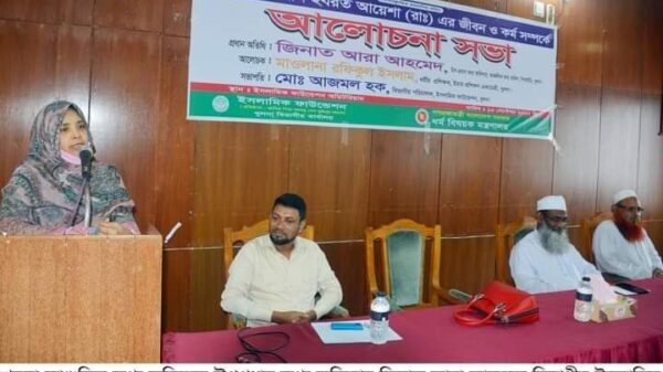 খুলনা প্রতিনিধিঃ-খুলনা বিভাগীয় ইসলামিক ফাউন্ডেশন আয়োজিত উম্মুল মুমেনীন হযরত আয়েশা (রা:) এর জীবন ও কর্ম সম্পর্কে আলোচনা সভা অনুষ্ঠিত। মঙ্গলবার(১৩ সেপ্টেম্বর) দুপুরে ইসলামিক ফাউন্ডেশনের সম্মেলনকক্ষে অনুষ্ঠিত হয়। অনুষ্ঠানে প্রধান অতিথি আরো খবর
