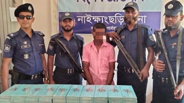 আমিনুল ইসলাম:নাইক্ষ্যংছড়ি প্রতিনিধিঃনাইক্ষ্যংছড়ি থানাধীন ঘুমধুম তদন্ত কেন্দ্র পুলিশের মাদক বিরুধী অভিযানে তুমব্রু পাহাড় পাড়া এলাকা থেকে ১ হাজার প্যাকেট ওরিস বিদেশী সিগারেটসহ একজনকে আটক করেছে পুলিশ। বুধবার(৭সেপ্টেম্বর) বান্দরবান জেলা পুলিশ আরো খবর