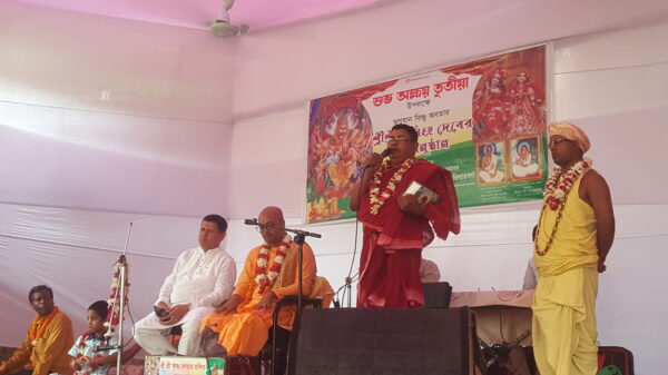 রিমন পালিত:বান্দরবান প্রতিনিধি:বান্দরবানে অক্ষয় তৃতীয় উপলক্ষে বিশ্ববাসীর মঙ্গলের জন্য নৃসিংহ দেবের যজ্ঞানুষ্ঠান সম্পন্ন হয়েছে। আজ ২৩ এপ্রিল রবিবার সকালে বৈষ্ণব প্রবর মানিক কৃষ্ণ গোস্বামীর পরিবার বর্গের আয়োজনে বান্দরবান পৌরসভার ৩ আরো খবর