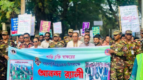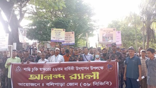 থানচি (বান্দরবান) প্রতিনিধিঃ শান্তিচুক্তি স্বাক্ষরের ২৬তম বর্ষপূর্তি উদযাপনে উপলক্ষ্যে বান্দরবানে থানচিতে উৎসবমূখর পরিবেশের বিভিন্ন কর্মসূচী’র মাধ্যমে দিবসটি পালিত হয়েছে। শনিবার (২রা ডিসেম্বর) সকালে ঐতিহাসিক শান্তিচুক্তি দিবস উপলক্ষে বলিপাড়া ব্যাটালিয়ন (৩৮ আরো খবর