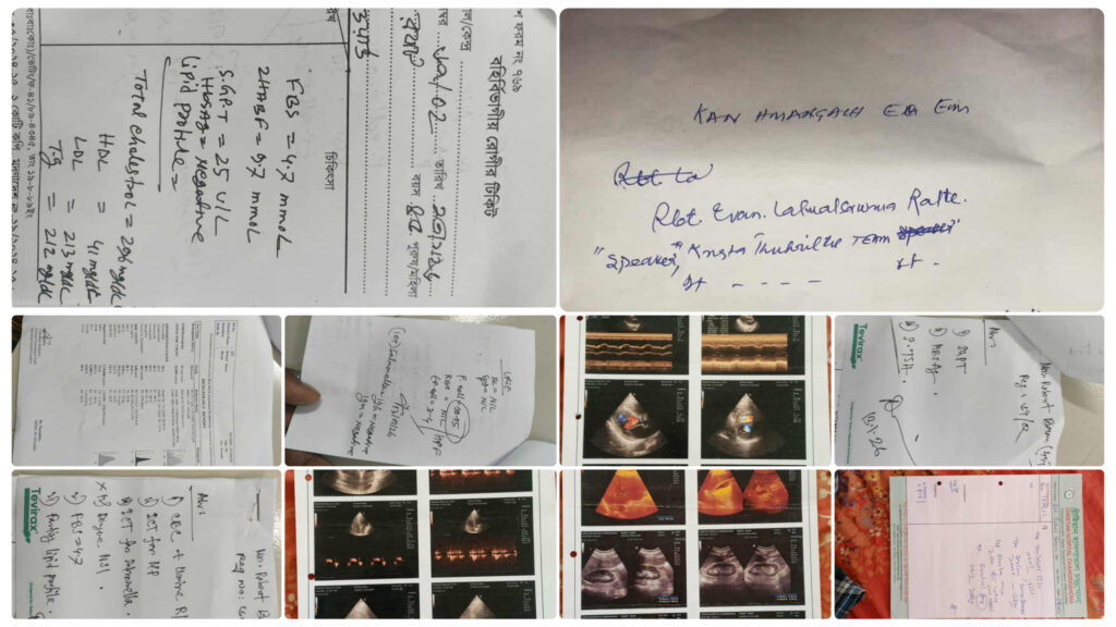 সবাইকে জানাই আসসালামুয়া লাইকুম, আদাব,সালাম,নমস্কার ও ইম্মানুয়েল। আজ আমি রেভারেন্ডঃ রবার্ট বম পিতাঃ মৃত,আলকিপ বম মাতাঃ থংলিয়ানকিম বম গ্রামঃযমুনাছড়ি বম পাড়া,৩ নং ফারুয়া ইউনিয়ন,উপজেলাঃবিলাইছড়ি,জেলাঃরাঙ্গামাটি পার্বত্য জেলা। আমি আপনাদের কাছে আমার কপালে লিখন কাহিনী শেয়ার না করে থাকতে পারছিলাম।আমার সংসারে জীবন কাহিনী। আমার বর্তমানে পরিবারে মা সহ সাত(৭) জন জনসংখ্যা। আমার ছেলে মেয়ে ৪ জন স্কুল কলেজে পড়ুয়া রয়েছে।আমার বড় মেয়ে ২০১৫ সাল থেকে তার শারিরীক অসুস্থতা কারণে আজ পর্যন্ত বাড়িতে চিকিৎসাধীন অবস্থায় এবং আমার বাবা লিভার ক্যান্সার বা ব্র্যান্ড সিরোসিস রোগে আক্রান্ত হয়ে প্রায় তিন(৩) বৎসর চিকিৎসা করা পর বাবা আমাদেরকে ছেড়ে পুরলোকগমণ করেন।বাবা আর মেয়ে চিকিৎসার জন্য প্রায় ৩০/৪০ লক্ষাধীক টাকা খরচ হয়।বাবার মৃত্যু ১৫ দিন পর আমার মেজো মেয়ে এপেডিসাইটিস কারণে অপারেশন করতে হয়েছে, এবং ২ মাস পর আমার ছেলে চোখের চিকিৎসা করতে হল।পরিশেষে আমি নিজে বিগত ১৮ জানুয়ারি ২০২৪ সাল হইতে হার্টের সমস্যা, টাইফেক, হাইপ্রেসার ও বিভিন্ন রোগে আক্রান্ত হয়ে চিকিৎসা করতে করতে প্রায় ৪/৫ লক্ষাধীক টাকা খরচ করার পরেও আজ পর্যন্ত সুস্থ হতে পারিনাই। বর্তমানে ও ২/৩ দিন যাবত বিলাইছড়ি সদর হাসপাতালে চিকিৎসাধীন অবস্থায় আছি।বিগত সময় থেকে আমার ছেলে,মেয়ে ও বাবার সুচিকিৎসা জন্য সরকারি, বেসরকারি, সংস্থা অফিসে আর্থিক সাহায্য সহযোগীতা অনুদান আশায় অফিসে অফিসে, দরজায় দরজায় গিয়েছিলাম, কিন্তুু,দুঃখের বিষয় পুরাকপাল আমার আজ পর্যন্ত খালি হাতে ফিরে যেতে হচ্ছে। তবু,আামাদের, হাস মুরগি, গরু ছাগল গাড়ি বাড়ি বিক্রি করে এবং মহাজনদের কাছে শোধে টাকা নিয়ে চিকিৎসা চালিয়েছি।আবারো এখন আমার সুচিকিৎসার জন্যে ভাল হাসপাতালে চিকিৎসা না করলে আমার শারিরীক অবস্থা খারাপ দিকে হওয়ার সম্ভাবনায় বেশি,বর্তমানে আমার নাই কোন টাকা পয়সা,নাই কোন ধন সম্পদ বিক্রি করার মত কিছু। শুধু আছে স্বৃতির কর্তা নাম ডাকা ছারা কিছুই নাই।