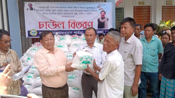 থানচিতে ৭শত দরিদ্র পরিবার মাঝে চাউল বিতরণ