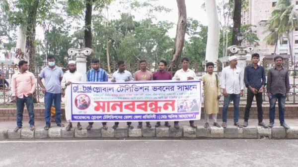 গ্লোবাল টিভির সাংবাদিকদের উপর হামলার প্রতিবাদে ভোলায় মানববন্ধন