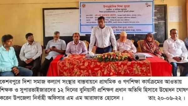 কেশবপুরে দিশা সমাজ কল্যাণ সংস্থার বাস্তবায়নে শিক্ষক ও সুপারভাইজারদের ১২ দিনের বুনিয়াদী প্রশিক্ষণ উদ্বোধন