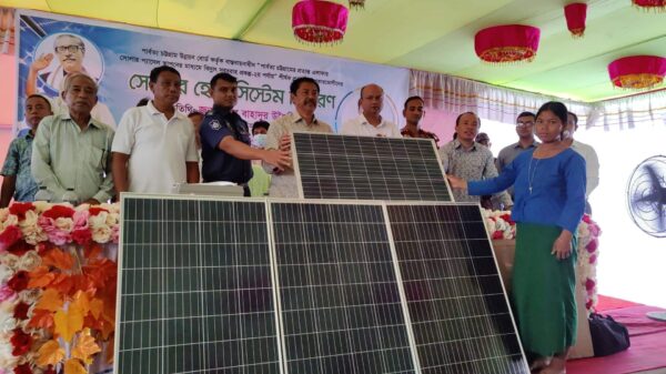 বান্দরবানের থান‌চির দূর্গম তিন্দু ইউ‌নিয়‌নে ৫শ ৭৬জন প‌রিবা‌রের মা‌ঝে সোলার প্যানেল বিতরন