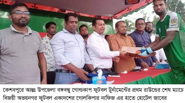 আরশাদুল ইসলাম কেশবপুর যশোর প্রতিনিধিঃযশোরের কেশবপুর উপজেলা ক্রীড়া সংস্থার আয়োজনে শেখ রাসেল মিনি স্টেডিয়ামে শুক্রবার বিকালে আন্তঃ উপজেলা বঙ্গবন্ধু গোল্ডকাপ ফুটবল টুর্নামেন্টের প্রথম রাউন্ডের শেষ ম্যাচে অভয়নগর উপজেলা ফুটবল একাদশ আরো খবর