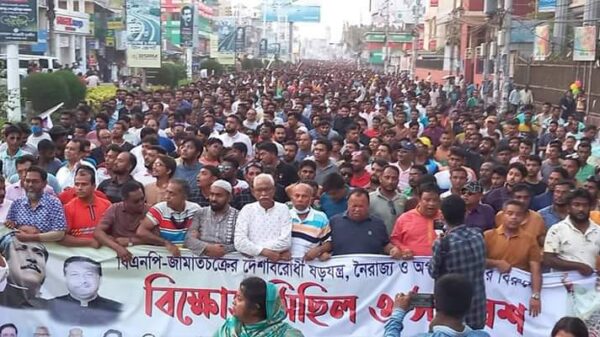 মেহেদী হাসান, খুলনা প্রতিনিধিঃ-বিএনপির গণসমাবেশের একদিন আগে খুলনা মহানগরীতে বিশাল শোডাউন দিয়েছে যুবলীগ, ছাত্রলীগ ও স্বেচ্ছাসেবক লীগের নেতাকর্মীরা। পূর্ব ঘোষিত কর্মসূচি অনুযায়ী বিএনপি-জামায়াতের দেশবিরোধী ষড়যন্ত্র, নৈরাজ্য ও অপপ্রচারের প্রতিবাদে তারা আরো খবর