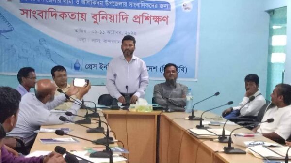 নিজস্ব প্রতিবেদক :পার্বত্য বান্দরবানের লামা-আলীকদমে কর্মরত সাংবাদিকদের পেশাগত দক্ষতা বৃদ্ধির লক্ষ্যে প্রেস ইন্সটিটিউট বাংলাদেশে (পিআইবি) এর উদ্যোগে তিন দিনব্যাপী সাংবাদিকতায় বুনিয়াদী প্রশিক্ষণ সমাপ্ত হয়েছে৷ মঙ্গলবার ১১অক্টোবর লামা পৌরসভার ইসমাইল স্মৃতি আরো খবর