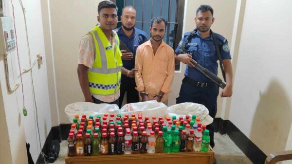 লামায় দেশীয় তৈরি চোলাই ১০০বোতল সহ মদ ব্যবসায়ী আটক