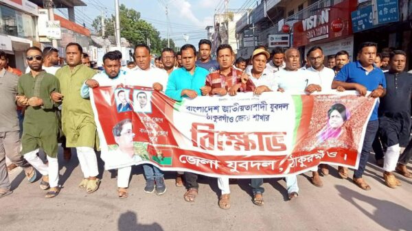 ঠাকুরগাঁওয়ে জেলা বিএনপির বিক্ষোভ অনুষ্ঠিত
