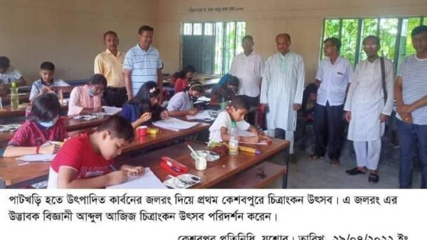 কেশবপুরে পাটখড়ির কার্বনের জলরং দিয়ে চিত্রাংকন উৎসব।
