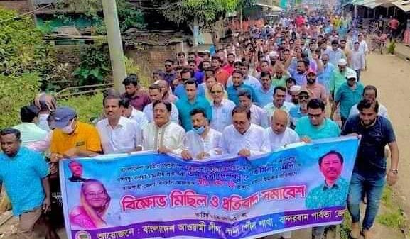 প্রধানমন্ত্রী’কে হত্যার হুমকির প্রতিবাদে লামায় আ’লীগের বিক্ষোভ সমাবেশ