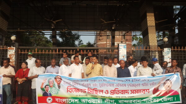 রিমন পালিত:বান্দরবান প্রতিনিধি:প্রধান মন্ত্রী শেখ হাসিনাকে হত্যার হুমকির প্রতিবাদে বান্দরবানে আ: লীগের বিক্ষোভ ও প্রতিবাদ সমাবেশ অনুষ্ঠিত হয়েছে । আজ ২২ মে সোমবার বিকালে বান্দরবান জেলা আওয়ামী লীগের আয়োজনে মুক্তমঞ্চ আরো খবর