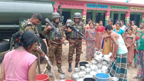 বান্দরবানে দুর্গম এলাকায় সেনা জোন কর্তৃক জনসাধারণকে সুপেয় পানি প্রদান।