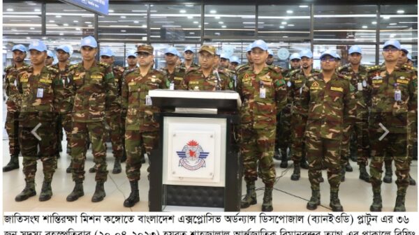 জাতিসংঘ শান্তিরক্ষা মিশনে বাংলাদেশ সেনাবাহিনীর এক্সপ্লোসিভ অর্ডন্যান্স ডিসপোজাল প্লাটুন মোতায়েন