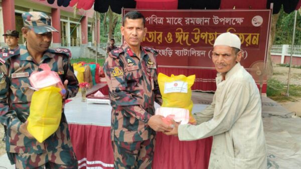 নাইক্ষ্যংছড়ি ১১ বিজিবির উদ্ধেগে দুঃস্থদের মাঝে ঈদ সামগ্রী বিতরণ
