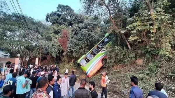রাঙ্গামাটিতে পর্যটকবাহী বাস যাত্রীসহ খাদে।