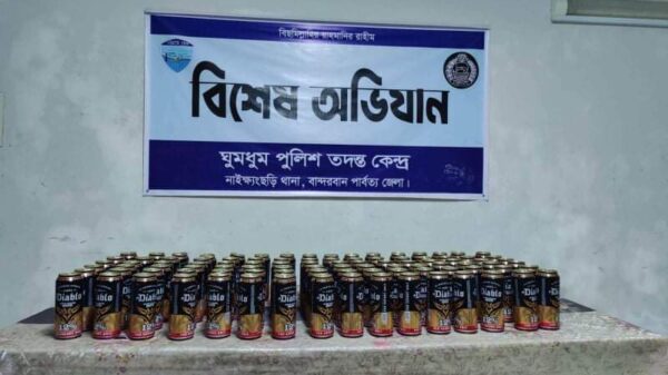 নাইক্ষ‍্যংছড়ির ঘুমধুমে পুলিশের অভিযানে বিদেশী বিয়ার উদ্ধার